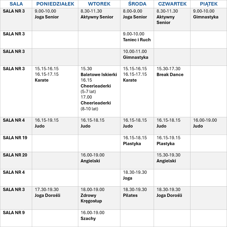 Harmonogram zajęć: