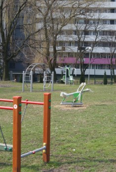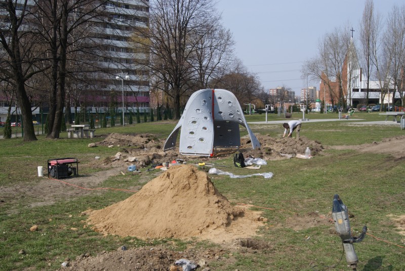 Aktualnie ustawiane są dodatkowe urządzenia zabawowe wraz z wykonaniem wymaganego podłoża.
